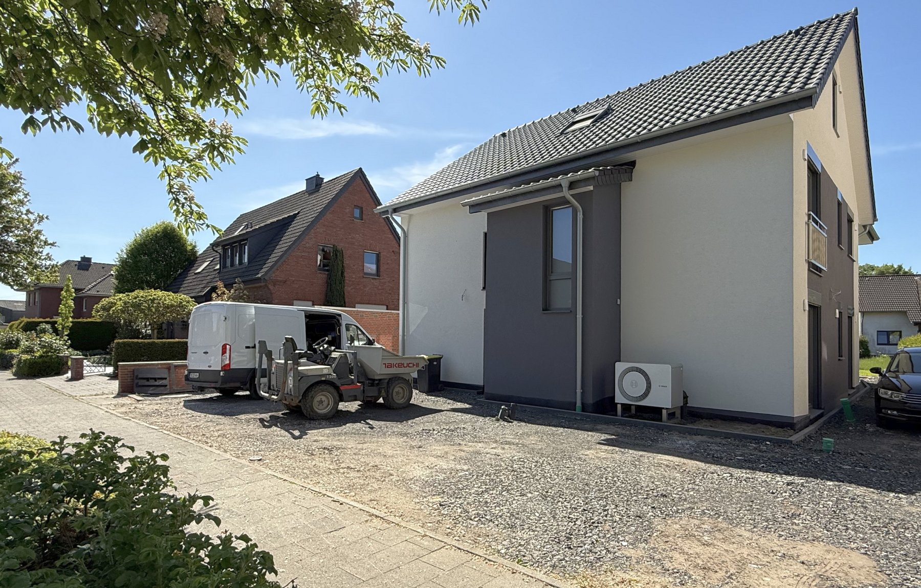 Wir präsentieren Ihnen eine moderne Wohnung in einem neuen Zweifamilienhaus (Erstbezug).