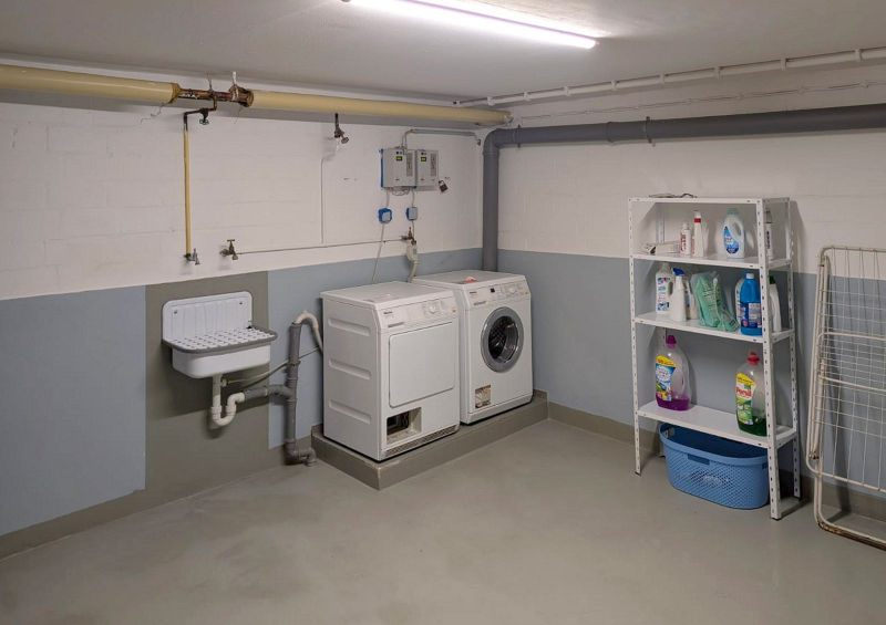 Im Keller stehen ein kleiner Abstellraum, ein Waschkeller mit Münzwaschmaschine und Münztrockner, sowie ein Fahrradkeller zur Verfügung.
